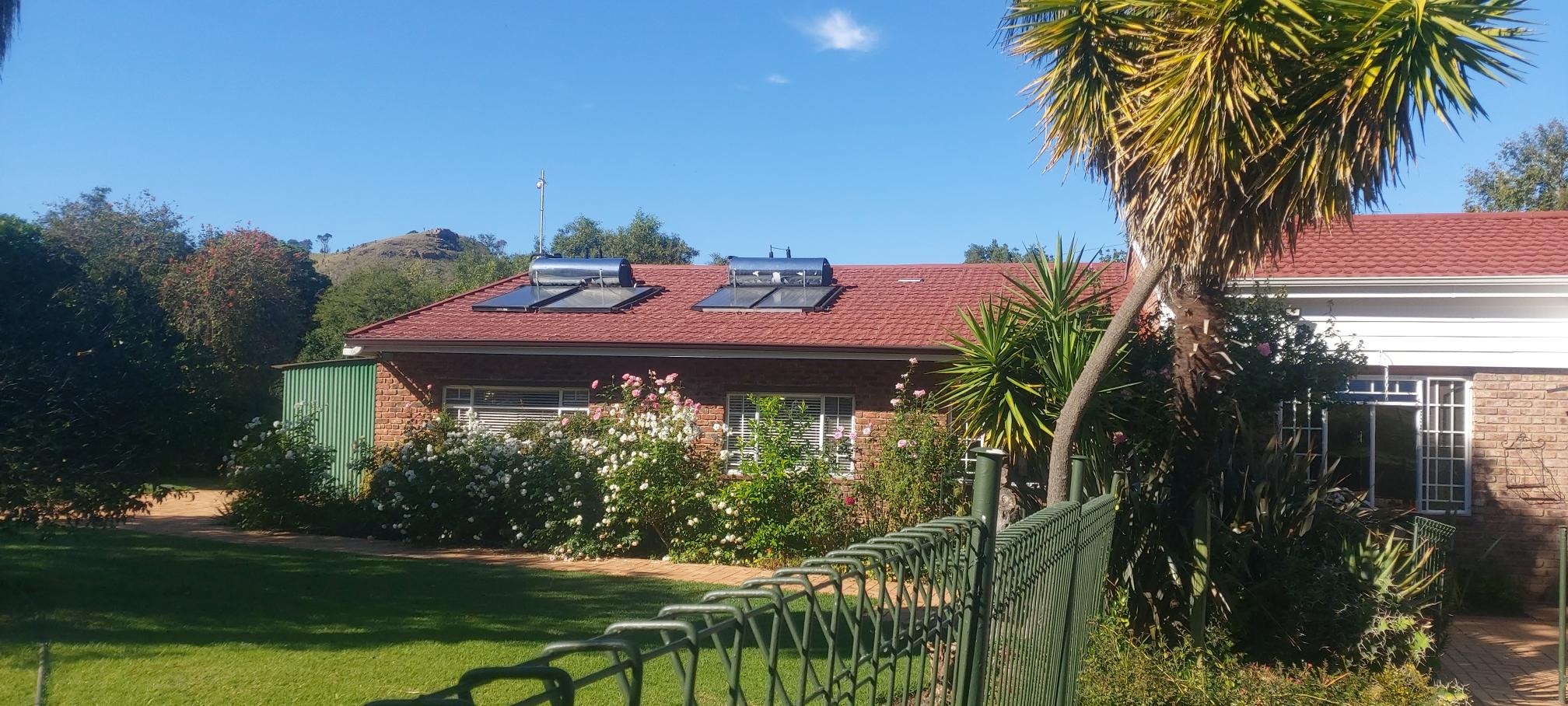 Outdoor living is equally impressive, with a refreshing swimming pool perfect for warm days and a beautifully maintained garden that complements the natural surroundings. Practical features such as a single garage, additional parking, a borehole, water tanks, and an irrigation system enhance convenience and sustainability. Security is well-addressed with an alarm system, fencing, and a security gate, offering peace of mind.