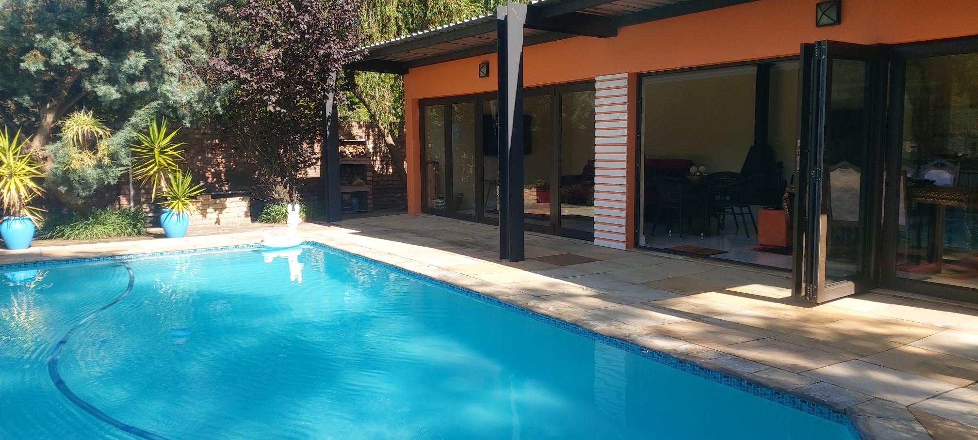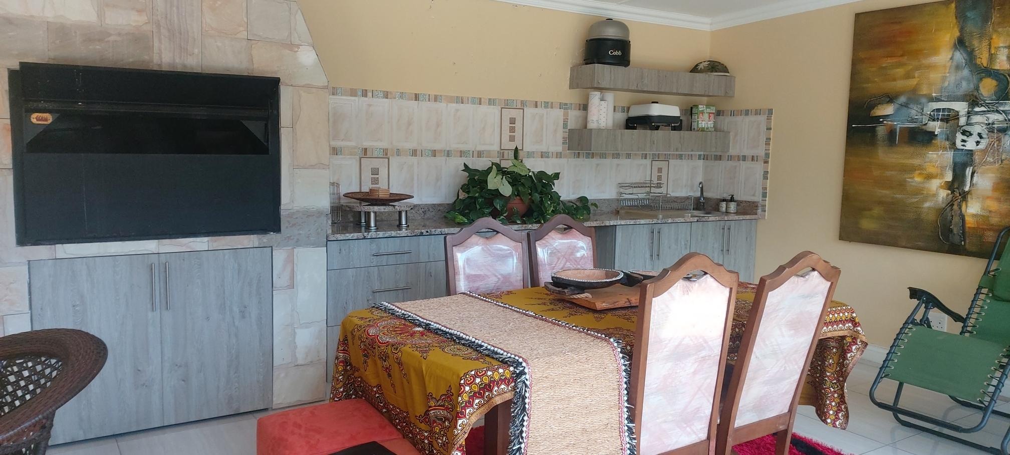 Discover this inviting residential property for sale in the established Blue Rise suburb of Queenstown. Boasting excellent curb appeal, the home features a modern, secure entrance with a stylish gate, high boundary walls, and electric fencing, ensuring peace of mind. The well-maintained front garden and paved driveway lead to convenient covered parking and a double garage. Inside, the residence offers a spacious and versatile layout designed for comfortable living. It comprises three distinct lounges, including a family TV room, a dedicated dining room, and a well-appointed kitchen. Natural light floods the living spaces, complemented by air conditioning units for year-round comfort. The open-plan design enhances flow, while special doors and sliding doors connect indoor and outdoor areas seamlessly. Accommodation includes five generously sized bedrooms and four bathrooms, with three of these being en-suite for added privacy and convenience. A guest toilet and a dedicated study further enhance the home's functionality. The property also benefits from practical amenities such as a laundry room, ample storage, and staff quarters. Outdoor living is a delight with a private patio, a refreshing swimming pool, and a beautifully landscaped garden equipped with an irrigation system and sprinkler system. The built-in braai and braai room provide an ideal setting for entertaining. For sustainability and self-sufficiency, the property includes solar panels, a battery inverter, a borehole, and water tanks, ensuring reduced utility costs and water resilience. Security is further enhanced with an alarm system, burglar bars, and security gates. Key Features: * 5 Bedrooms, 4 Bathrooms (3 En-suite) * 3 Lounges, Dining Room, Kitchen * Double Garage & Covered Parking * Swimming Pool & Built-in Braai * Solar Panels & Battery Inverter * Borehole & Water Tanks * Air Conditioning & Fireplace * Staff Quarters & Study * Electric Fencing & Alarm System